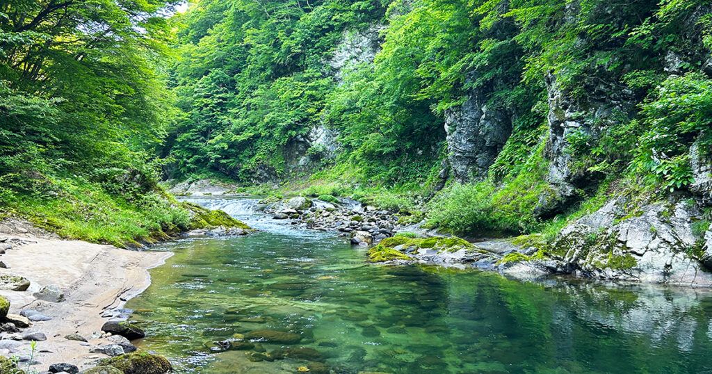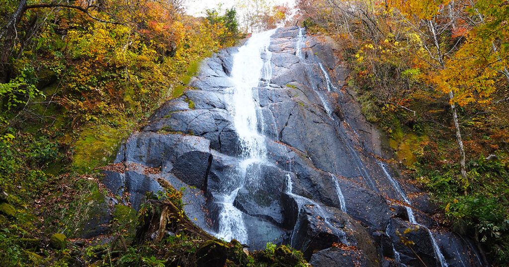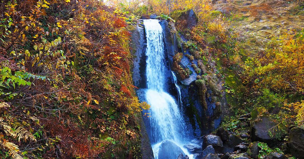 「削沢の滝」は、力強い水流が岩を削るように流れ落ちる、迫力あふれる滝です。荒々しくも美しいその姿から、繊細な「白糸の滝」と対をなし、こちらは“雄の滝”とも呼ばれています。轟音を響かせながら落ちる水は、自然の力を間近に感じさせ、訪れる人に深…